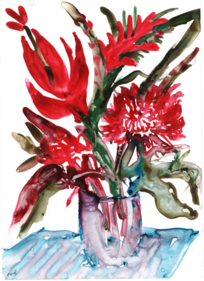 Immerse yourself in the enchanting beauty of nature with “Crimson Harmony: A Watercolor Symphony.” This 5 x 7-inch watercolor painting features a breathtaking arrangement of striking red flowers, expertly blended with lush green leaves to create a vibrant and lively composition.
