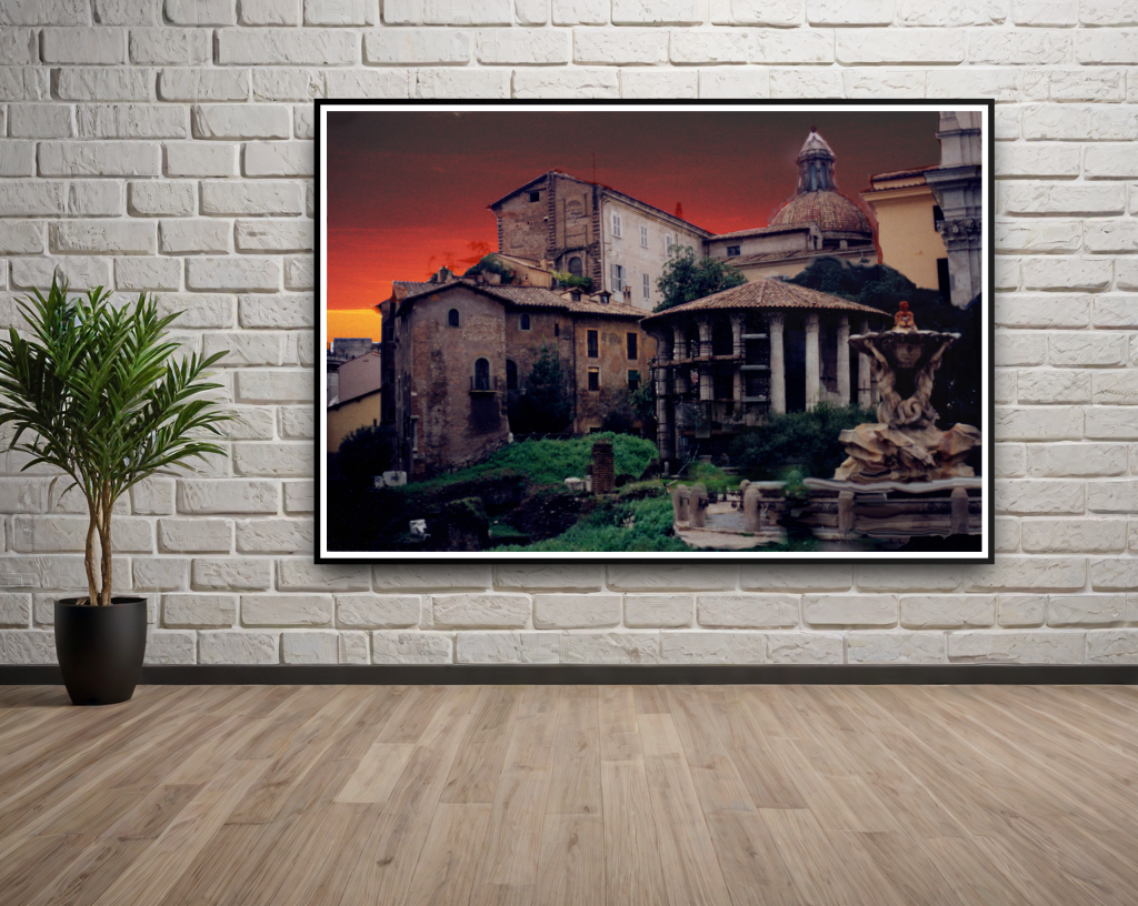 Experience the beauty of “Timeless Echoes,” a stunning digital artwork capturing the essence of the Vestile Virgins Forum. Available in both paper and aluminum formats, this 12″x9″ piece showcases a captivating blend of historic architecture bathed in an atmospheric sunset, perfect for art lovers and history enthusiasts alike.